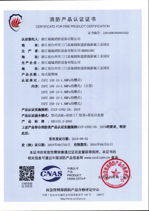 产品标准:GB5135.2《自动喷水灭火系统 第2部份:湿式报警阀、延迟器、水力警铃》