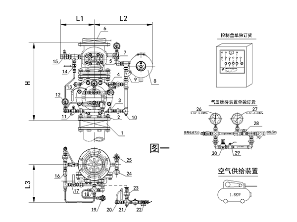 预作用装置由预作用报警阀组、控制盘、气压维持装置和空气供给装置组成,通过电动、气动、机械或其他方法进行开启,使水能够单方向流入喷水系统同时进行报警的一种单向阀组装置。